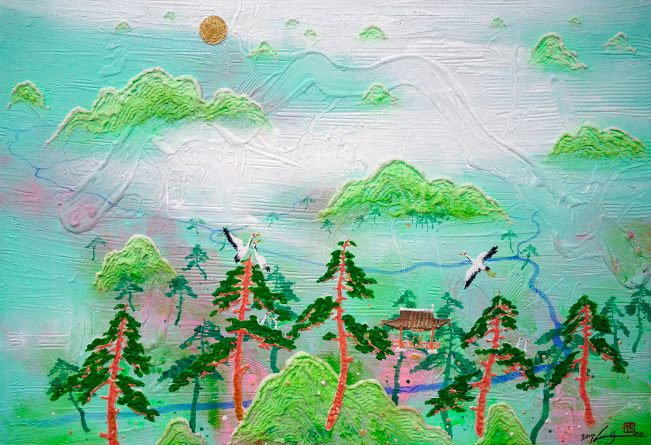 바탕위에 구상적인 표현력을 보여줌으로서 신선이 사는 땅,