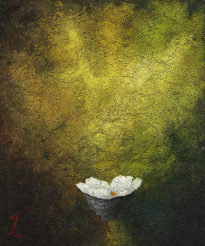 이상태 작가는 문인화 특유의 여백미를 백분 활용하여 조용하
